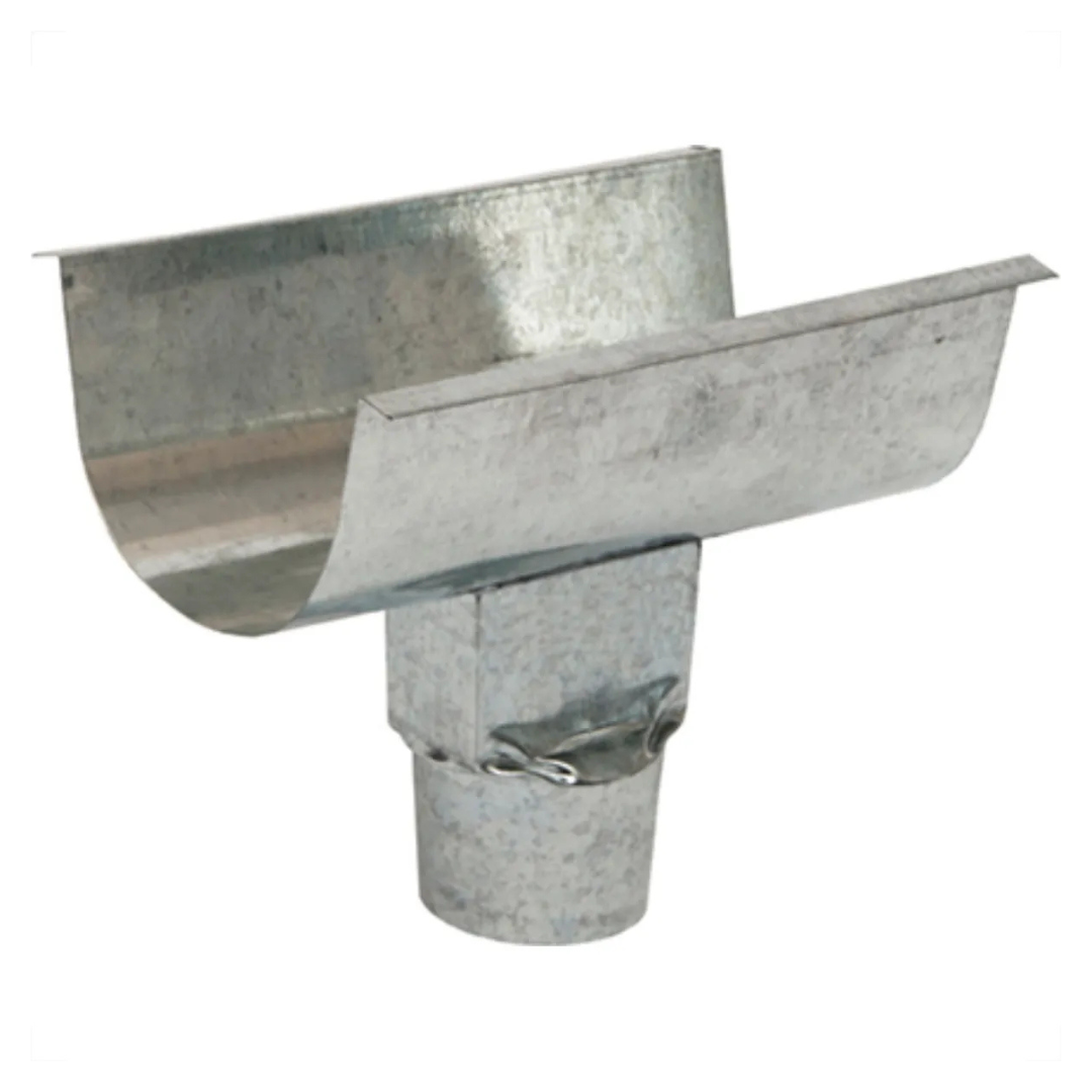 A Emenda Platibanda com bocal redondo Corte 28 galvanizado Calhaforte (EAN 7897871104370) é um acessório de calha em aço galvanizado, projetado para unir duas calhas do tipo platibanda e incluir um bocal de descida, permitindo o escoamento da água da chuva para condutores redondos ou retangulares.