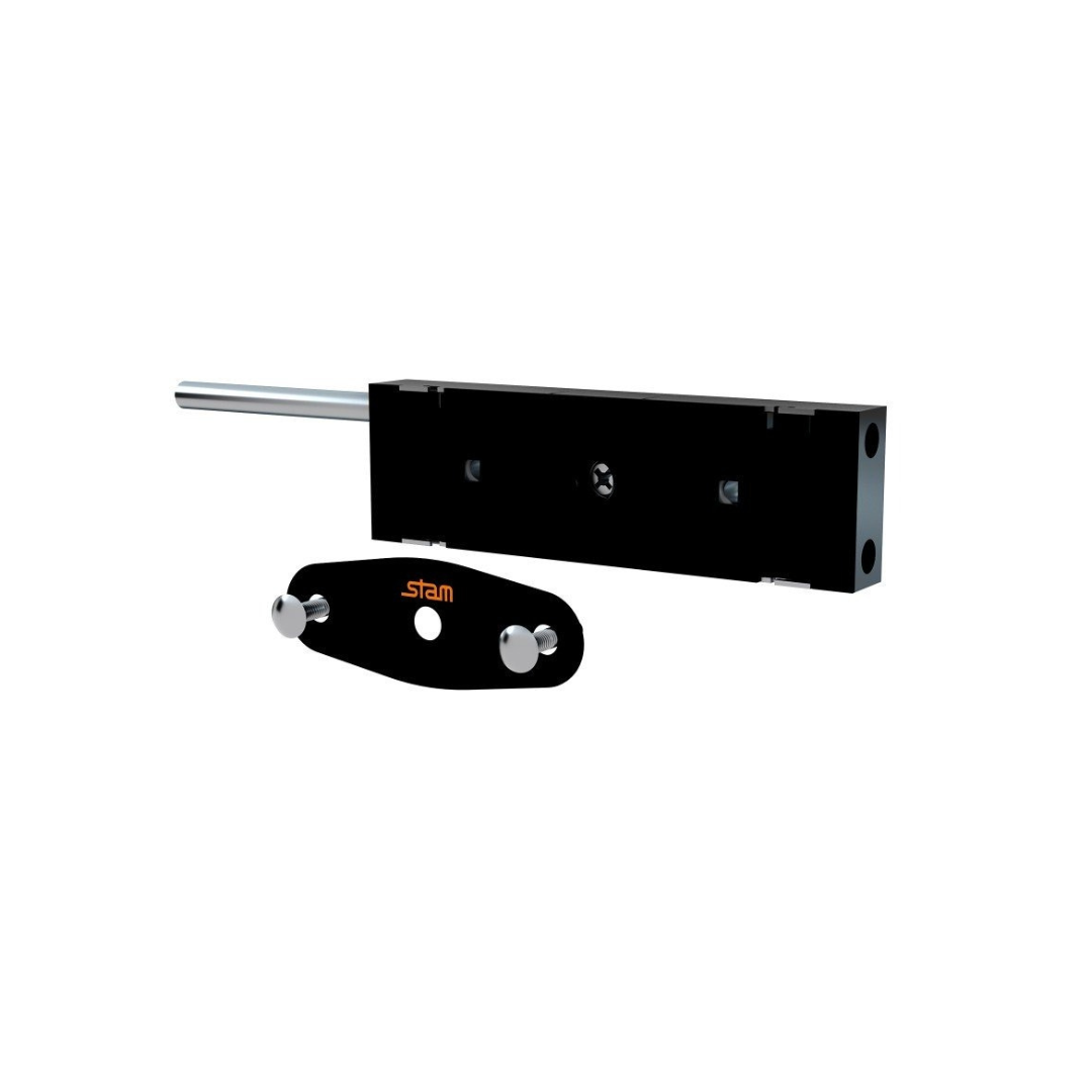 A Fechadura Stam 1200 (Par) Grafite é um modelo de embutir, tipo tetra, ideal para portas de enrolar, com acabamento em grafite e acompanha 4 chaves.
