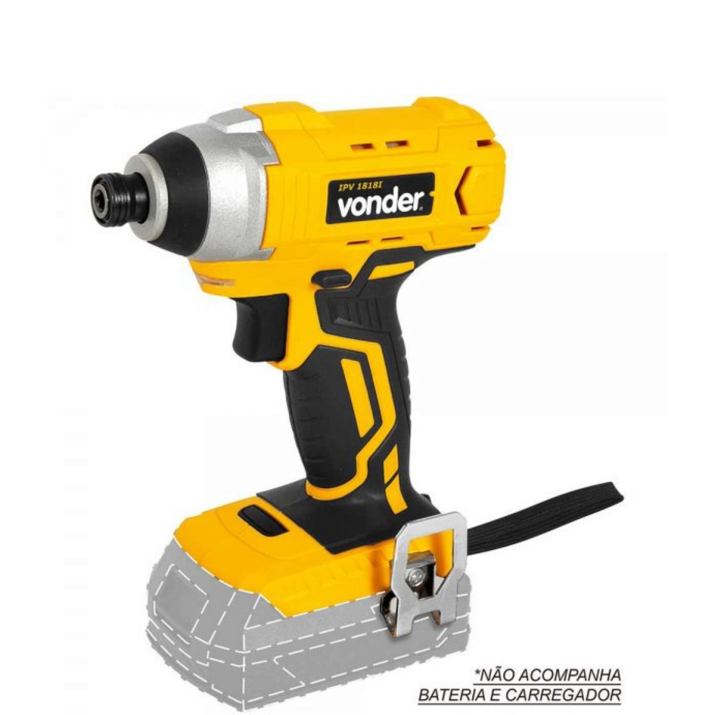 Este equipamento utiliza um modelo de bateria que pode ser intercambiável (não acompanha), ou seja, uma bateria que é compatível com outros modelos de ferramentas a bateria VONDER. Por isso, em sua próxima compra de ferramenta a bateria VONDER, procure um modelo que comece com a referência "I", ou que esteja identificado com o selo "Bateria Intercambiável VONDER". Desta forma, você garante modelos mais econômicos, sem a necessidade de aquisição de novas baterias e carregadores para uso em seu equipamento. Possui maior performance de parafusamento devido à sua alta rotação e força de impacto. Leve e compacta, conta com cabo com revestimento emborrachado para maior conforto e controle no manuseio, além de diminuir a fadiga do operador. Possui também LED, para melhor visibilidade do local de trabalho.