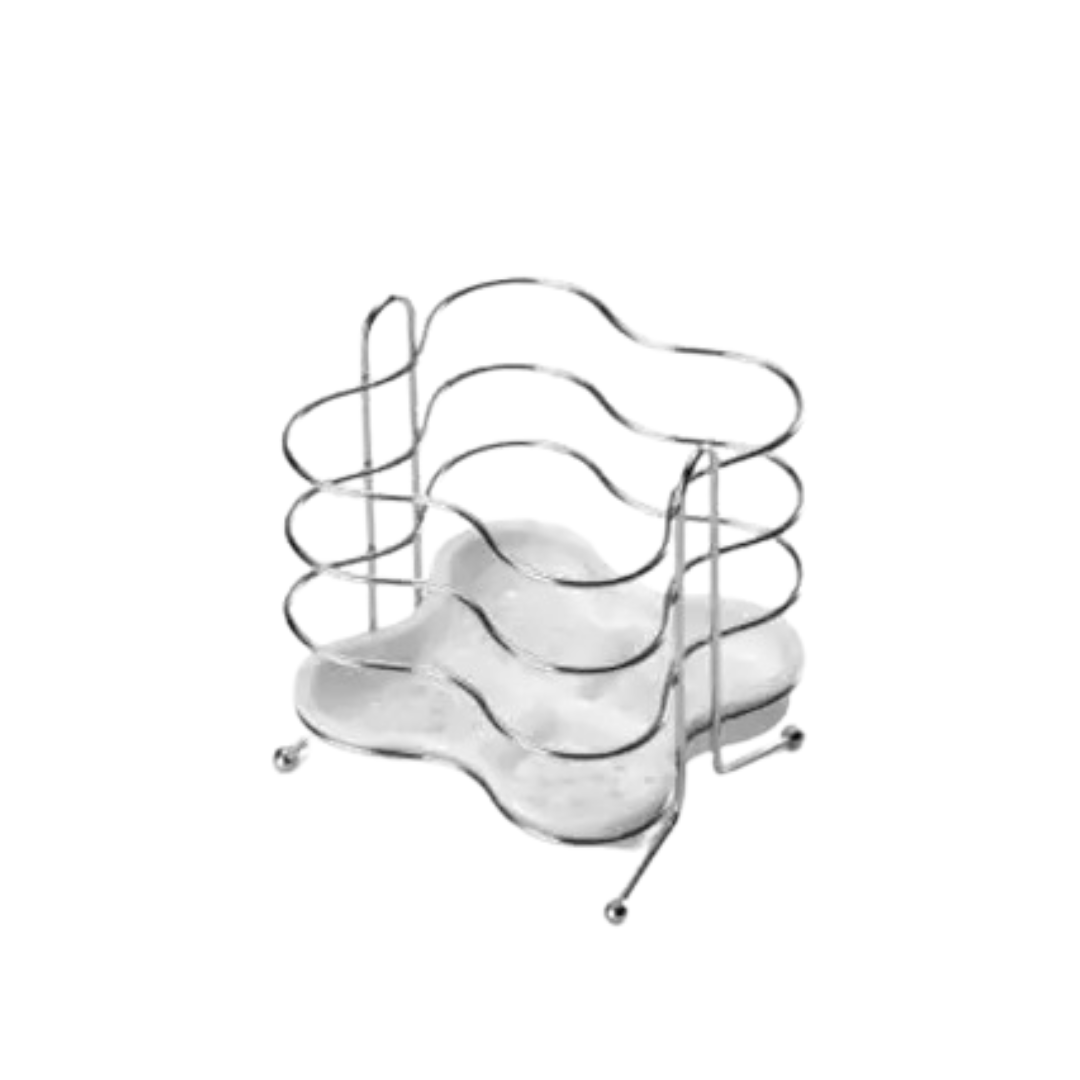 O Porta Talheres New 1638 da Arthi é uma peça elegante e funcional, feita em aço cromado com detalhes em plástico branco, ideal para organizar talheres com estilo e durabilidade.