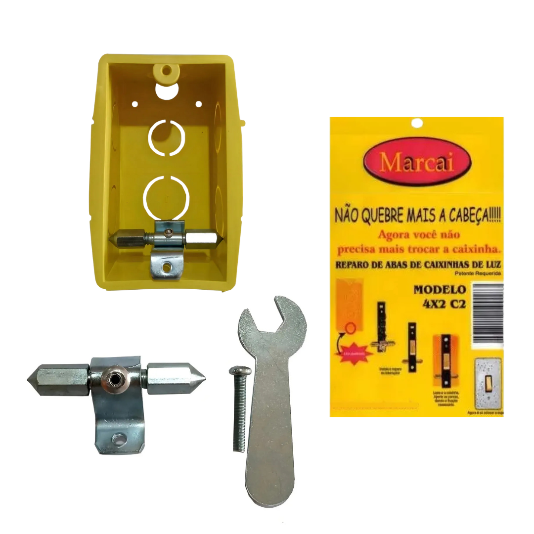 O Reparo Salva Caixinha 4x2 Marcai é um acessório desenvolvido para substituir as abas quebradas das caixinhas de luz padrão 4x2, permitindo a fixação de interruptores, tomadas e espelhos sem necessidade de trocar a caixa inteira. É fácil de instalar, seguro e evita quebra de parede.