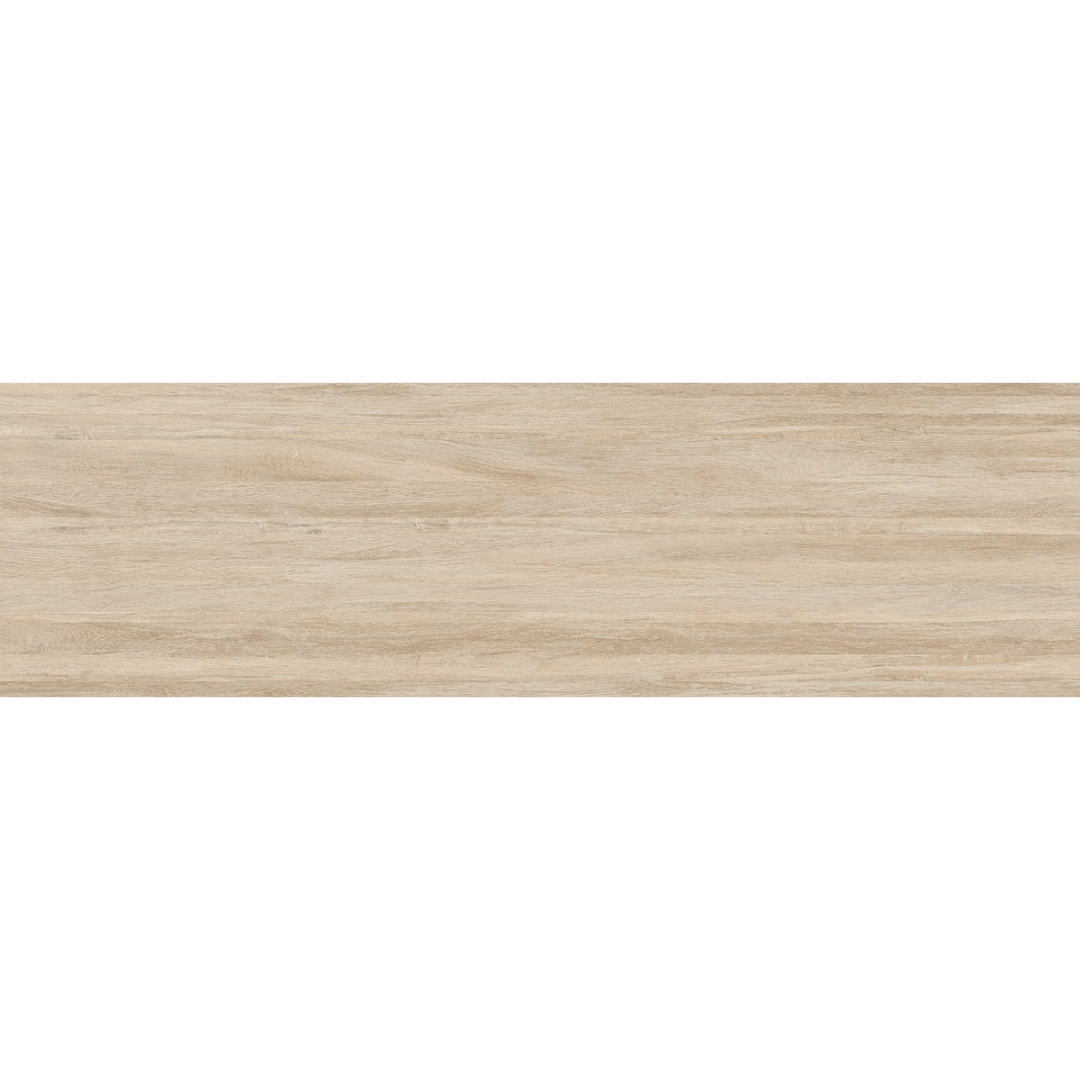 Com formato alongado de 35x120 cm, o revestimento reproduz o efeito de réguas de madeira, proporcionando continuidade visual e ampliando a sensação de espaço. O acabamento acetinado garante uma superfície suave e com aparência natural, enquanto as bordas retificadas permitem juntas mais finas e um acabamento mais uniforme e moderno.