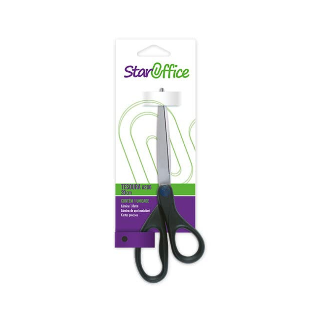 A Tesoura Profissional A206 20cm da Staroffice é uma ferramenta de corte precisa e confortável, ideal para uso em escritórios, artesanato e tarefas que exigem qualidade.