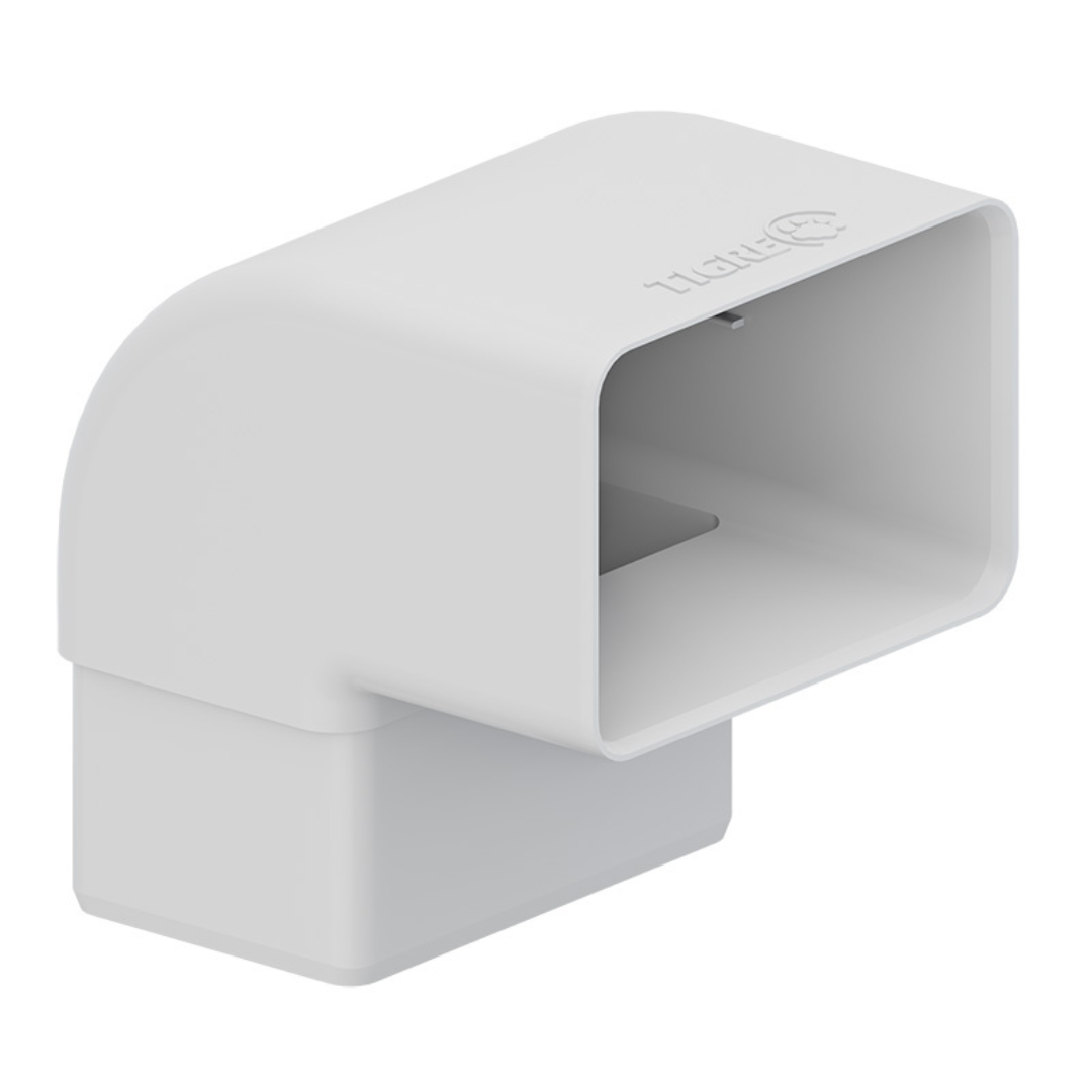 O Joelho 90° Retangular Aquapluv Style da Tigre é uma conexão em PVC que faz o desvio do condutor de água pluvial em um ângulo de 90°, garantindo estética moderna e funcionalidade na condução da água da chuva.